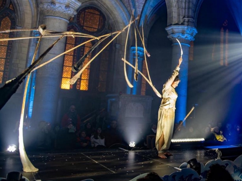 Balance, technique and art as a live performance are the key characteristics of this unprecedented show. Our artist is the backbone from which the creativity arises to accomplish a gigantic live sculpture integrated by palm tree branches supporting each other. It is an exciting proposal for the risks and difficulties involved, as any little distraction or change in its structure could make it break down.