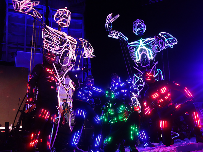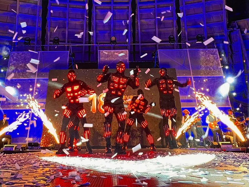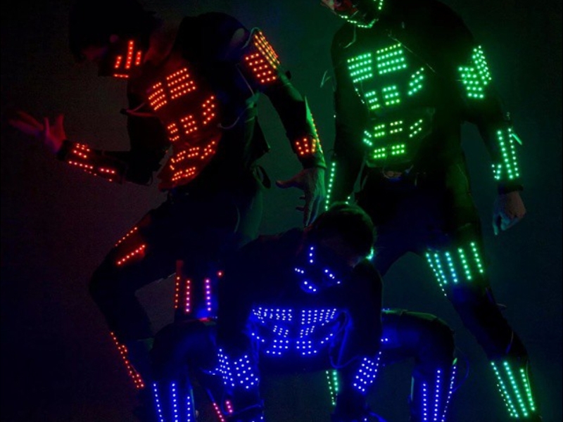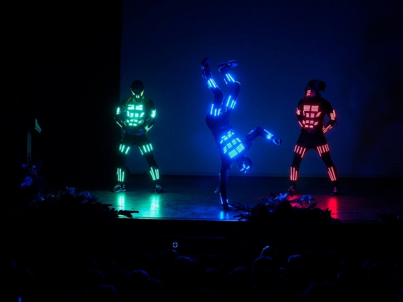 The perfect combination of the latest lighting technology, costumes, synchronized dance choreography and the best international dancers result in this unique, innovative and impactful show based on optical illusions. The well characterized artists in their light suits adapted to the event’s thematic, perform their dance on a darkened stage with black background. They become invisible and reappear within seconds in different locations of the stage, in a perfectly synchronized interplay of the lights.