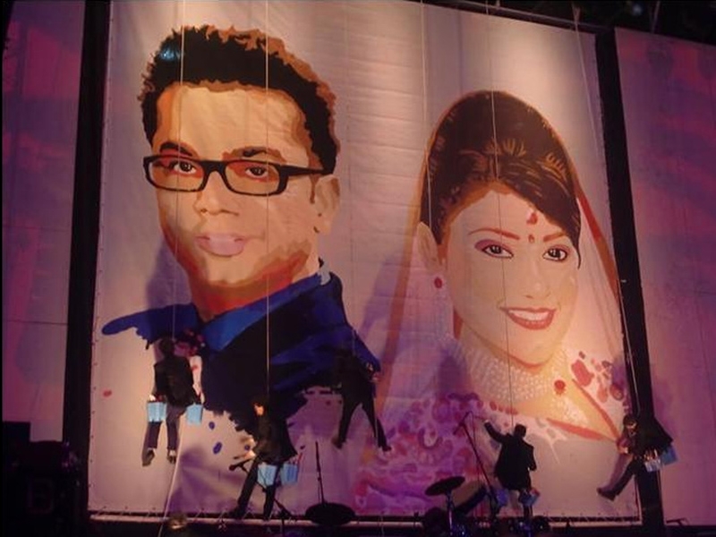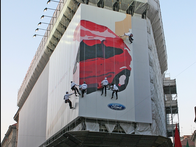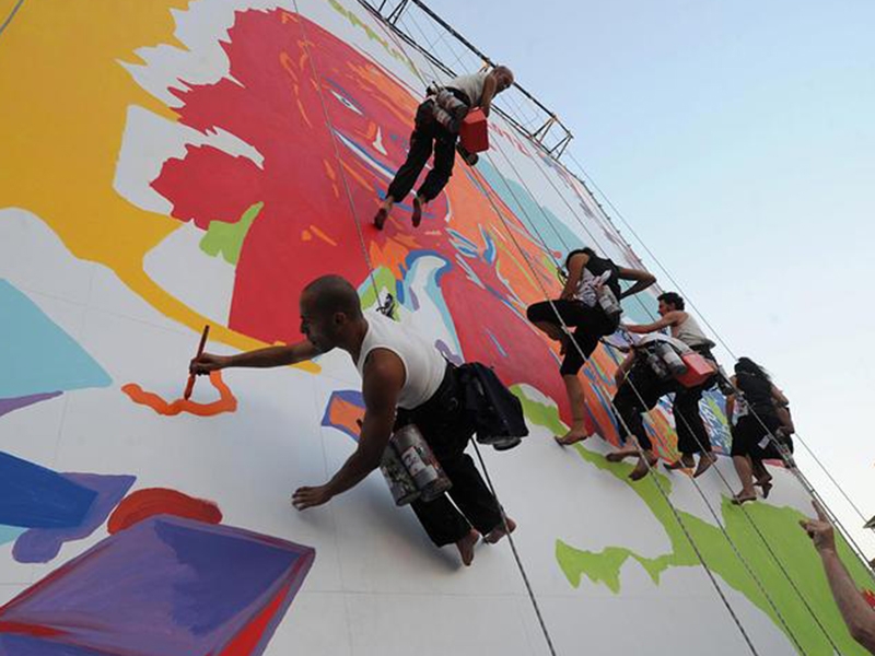 For magnitude events, a group of artists prepare a giant canvas that will be painted during the event. Between an aerial dance and a live painting show, the result is a spectacular fresco, full of colours and made on big dimensions.