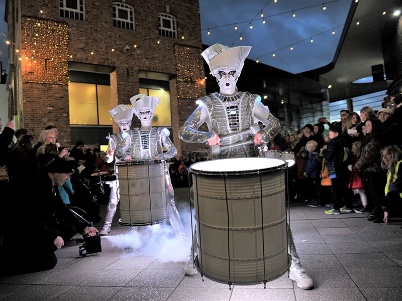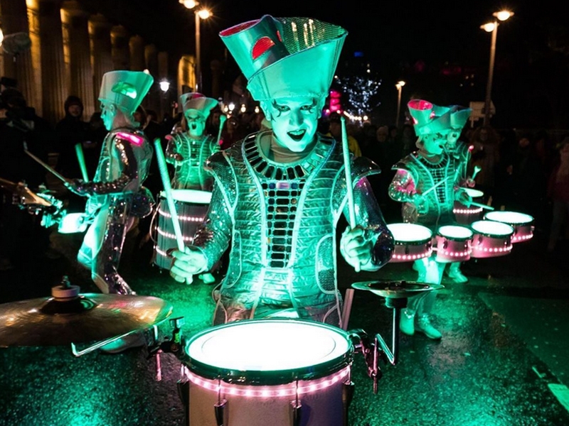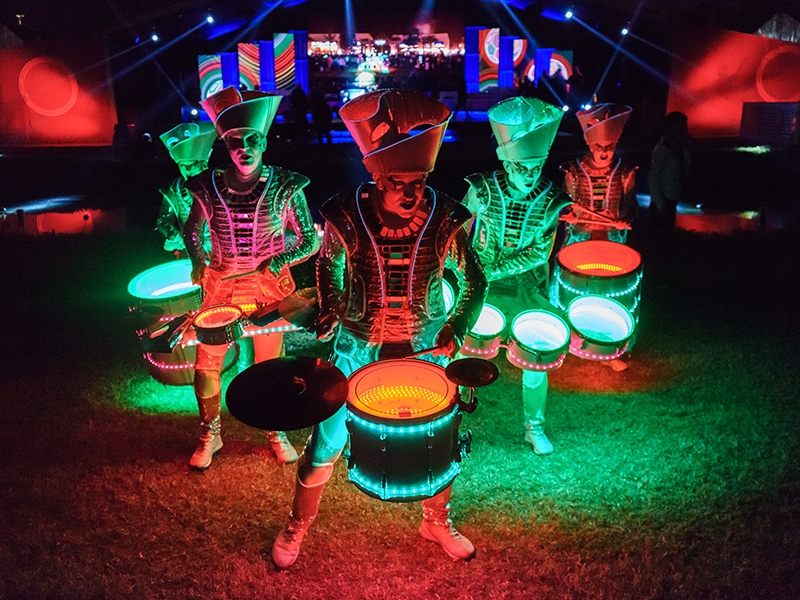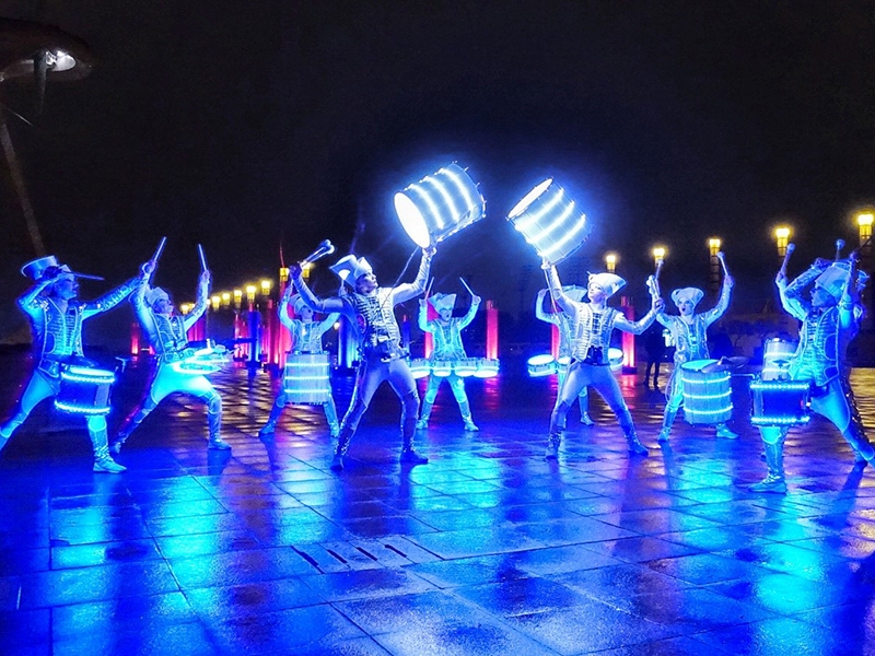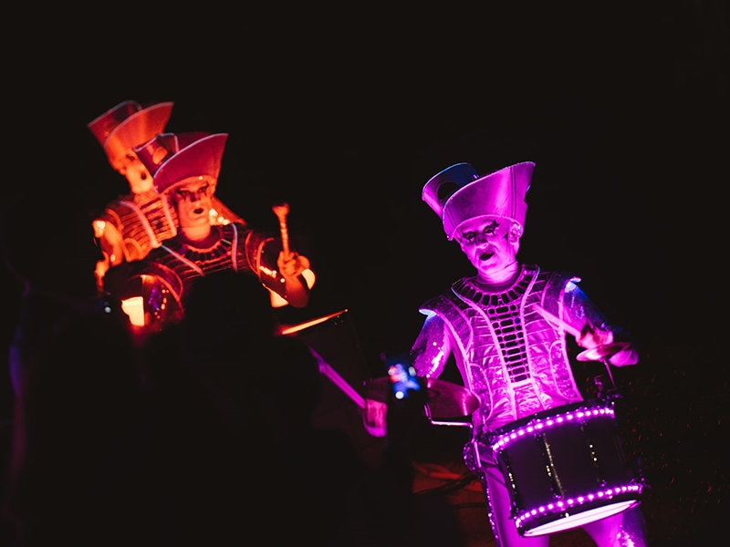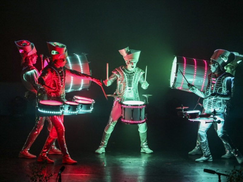 Shining Drummers offers a medium-scale street theatre show performed by 5 to 7 characters that combines high-impact drumming, dynamic choreography and beautiful lighting design.