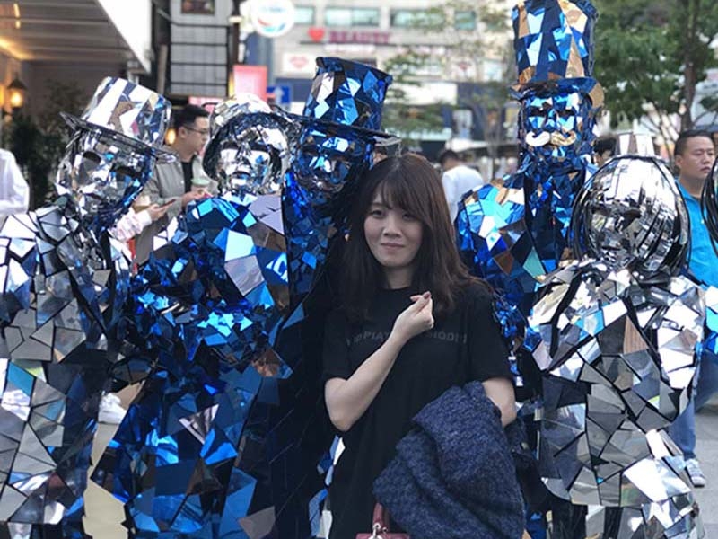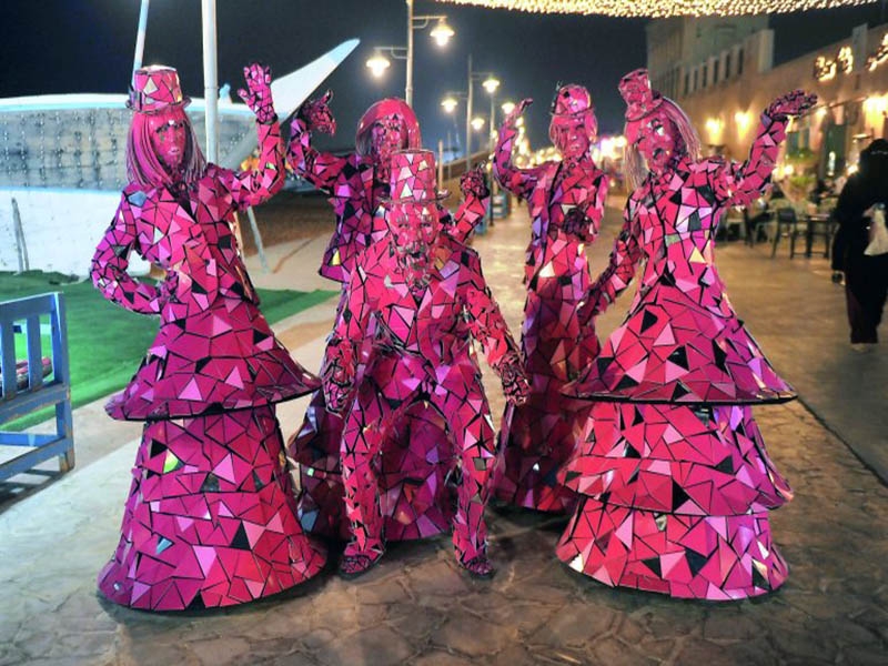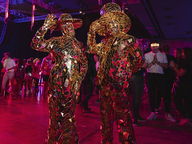A perfect animation for any Festival. The artists would walk around between the visitors, giving emotion and mirroring ambiance. The sun will be reflected on the mirrors and will shine everywhere.