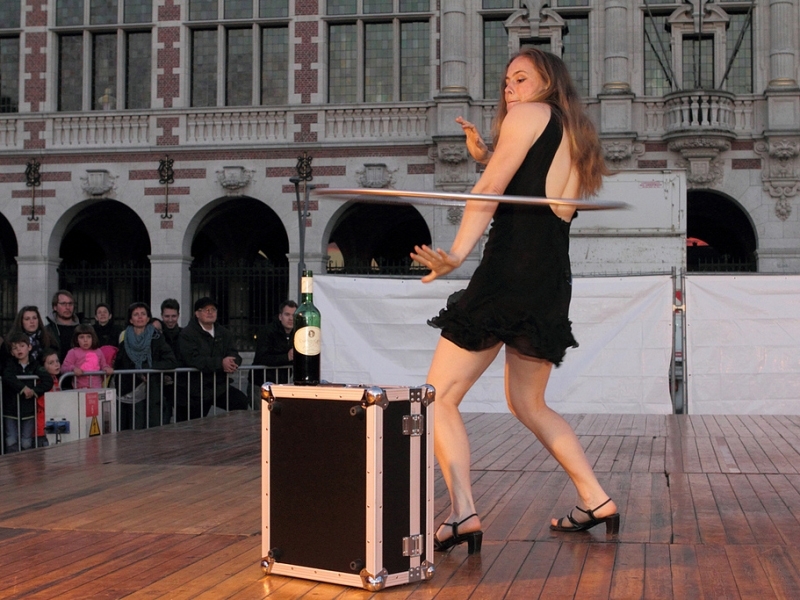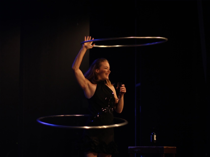 A nice glass of wine… normally a relaxing activity turns into an act of desperation when attempting it with a hula hoop. This highly entertaining cabaret act keeps the audience laughing and fascinated as Annabel attempts to keep her glass balanced within the turbulence of the hula hoop….and frankly ends up in a bit of a mess.