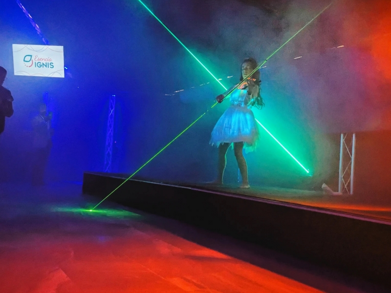 We present a show that fuses the magic of the violin with the power of lasers to create a truly stunning experience. This unique combination translates into a blend of great beauty that will leave the audience completely amazed and captivated.