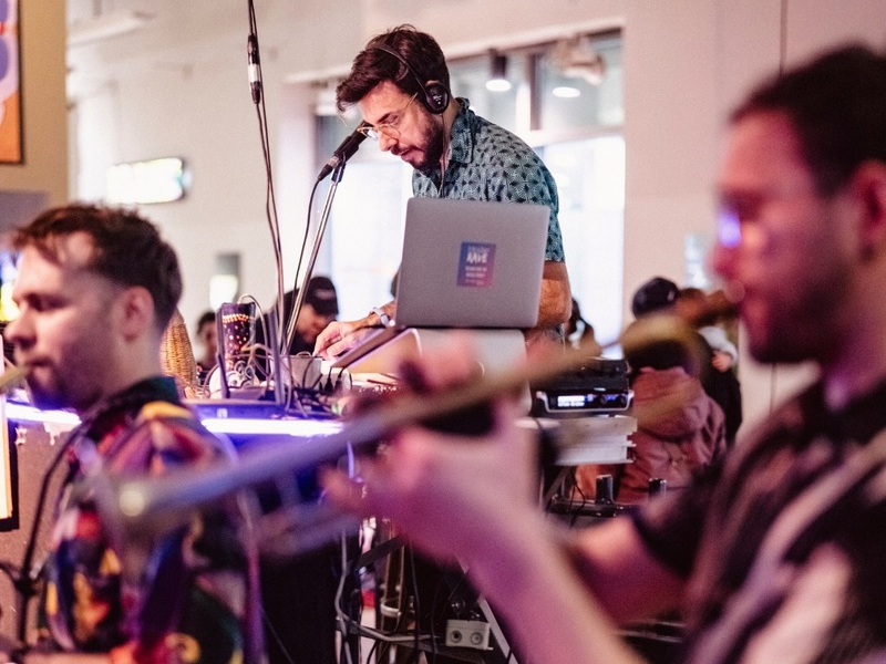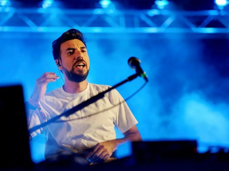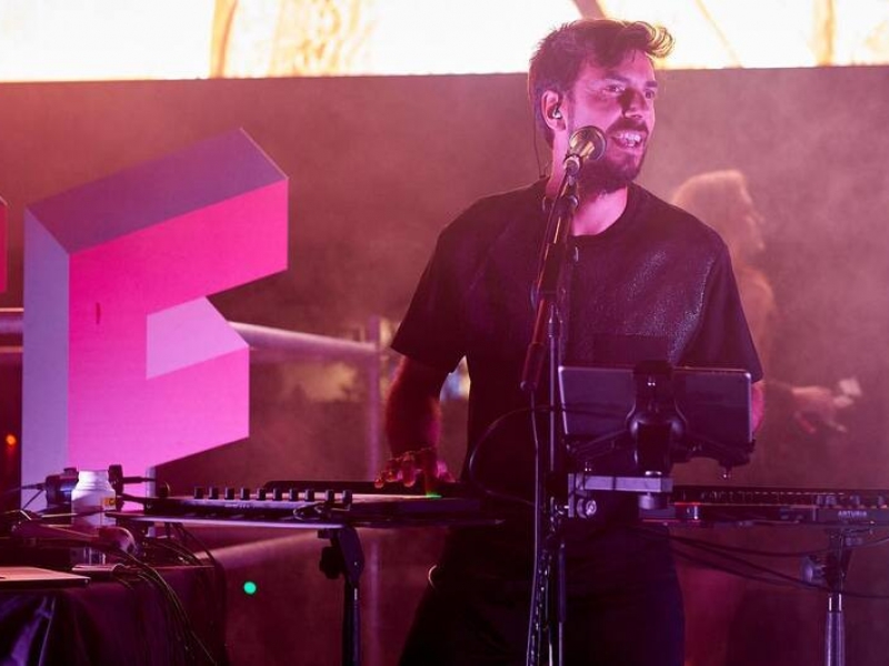 He composes live electronic music without traditional instruments, sculpting sound from objects, the human body, the voice, and the brand’s universe.