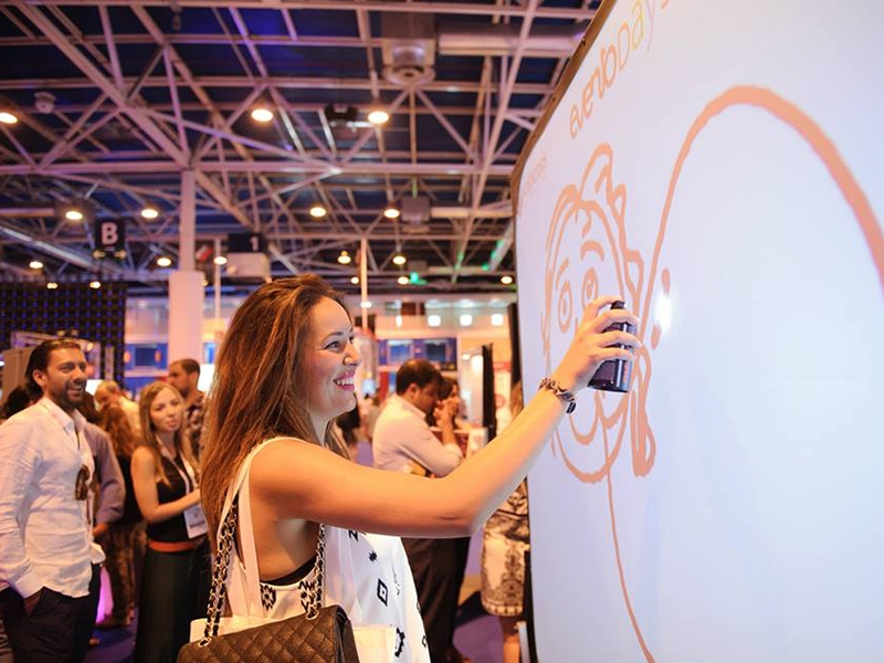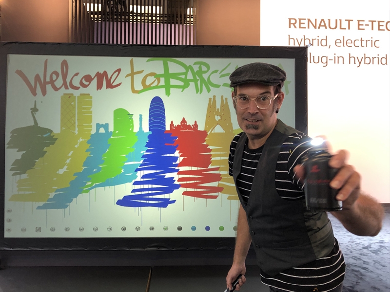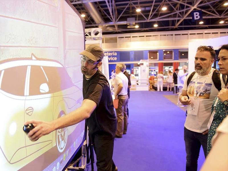 Revolution in the Speed-Painting shows with this performance that allows painting with cans lights. Indeed, Quim Moya, an expert in live painting performances, creates a series of visuals contents on a video-screen replacing his brushes by lights. Using a software program and a receptor placed behind the screen, it permits to change colours, textures and virtual painting effects in a same show. The result is a technological and artistic performance of last generation. Welcome to the era of digital art!