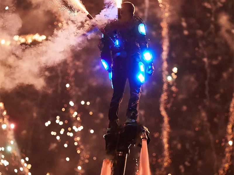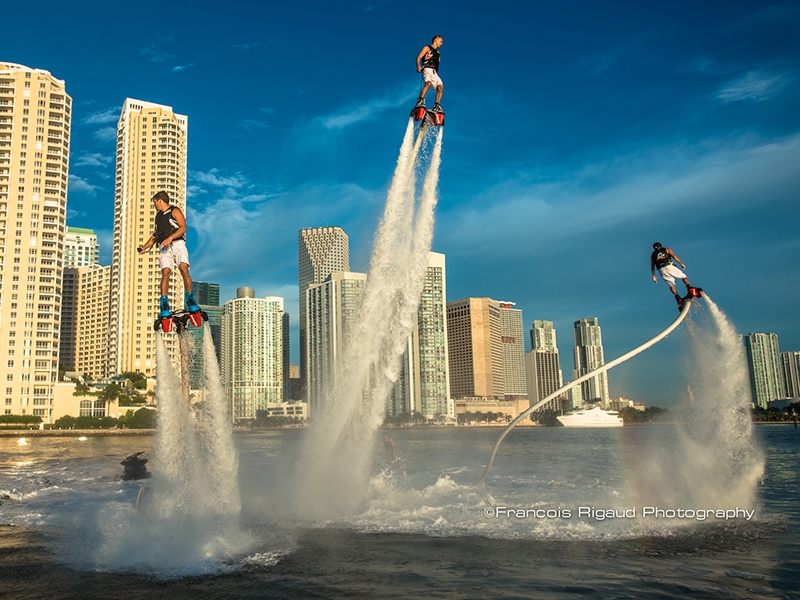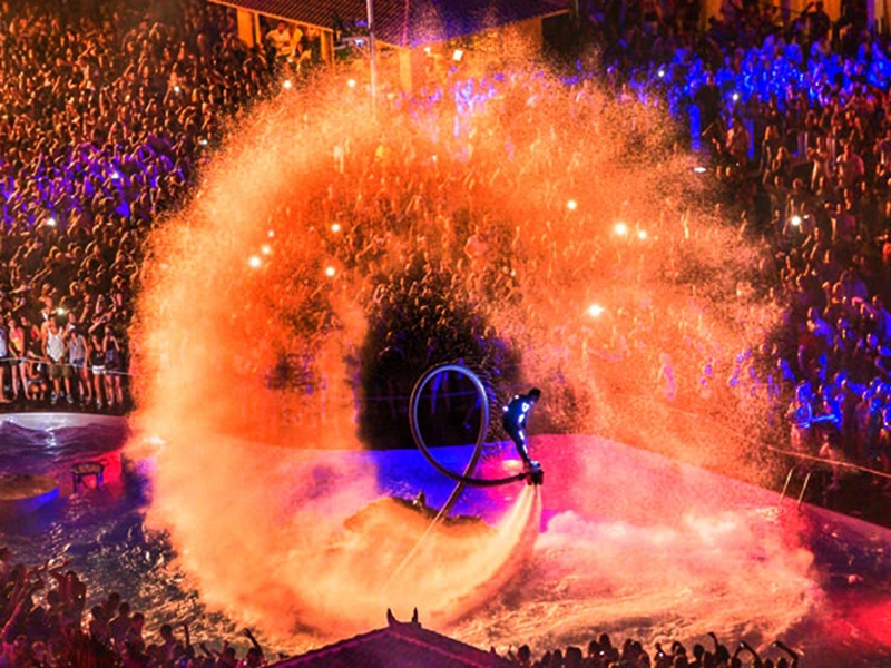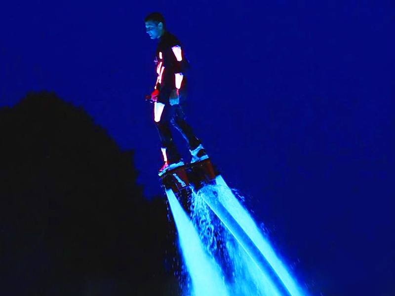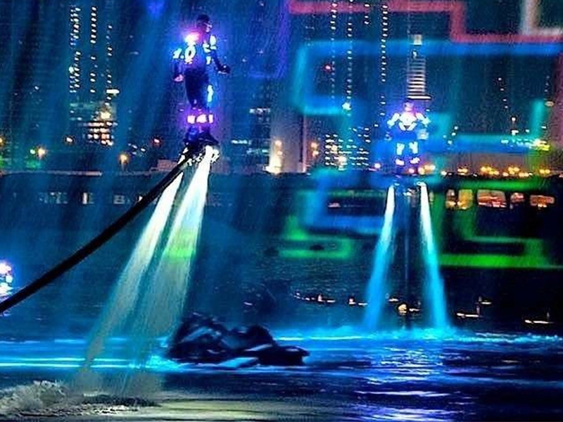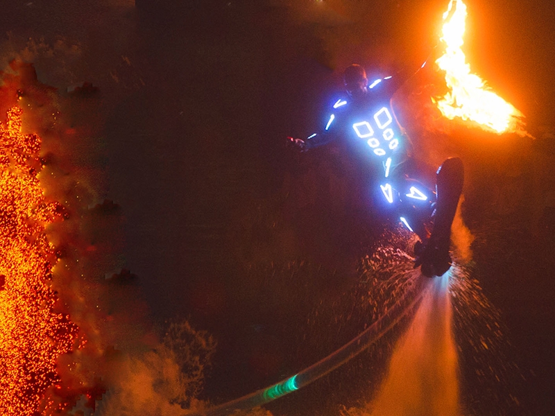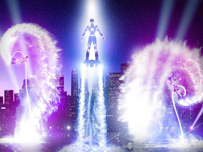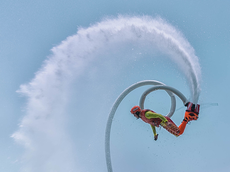 The key to developing these amazing choreographies is the pressure exerted on the water to reach the take-off & fly push. With the maximum control of the pilots on the vertical orientation of the water jets, they can reach up to 15 meters in the air or dive headfirst up to 2.5 meters into the water.