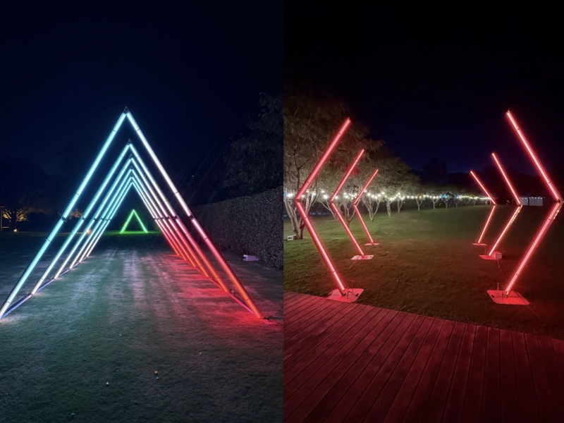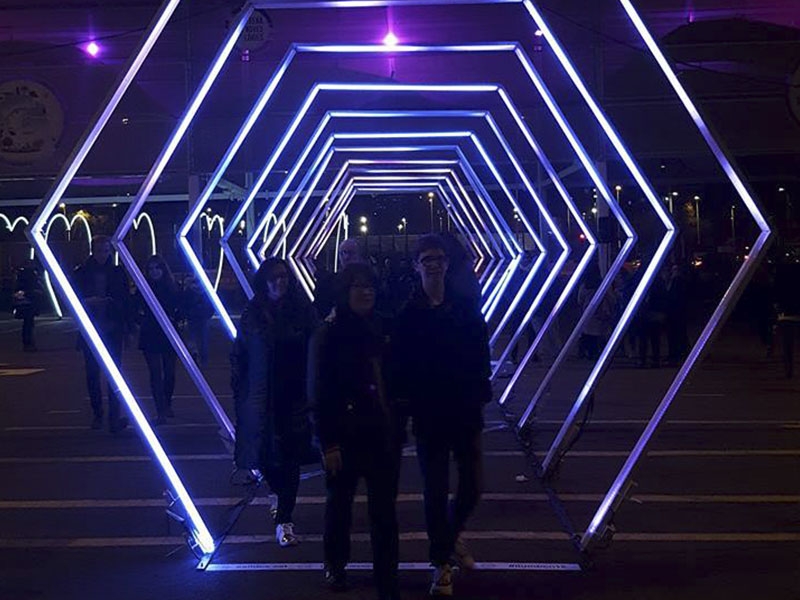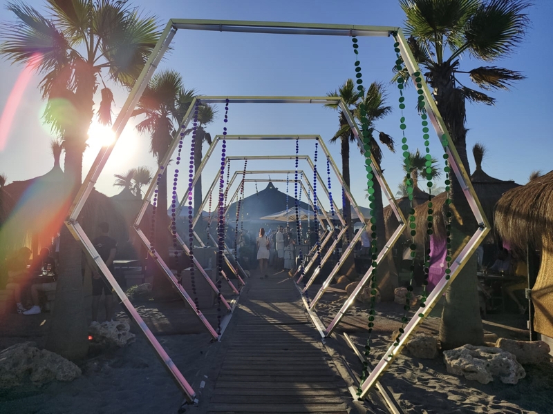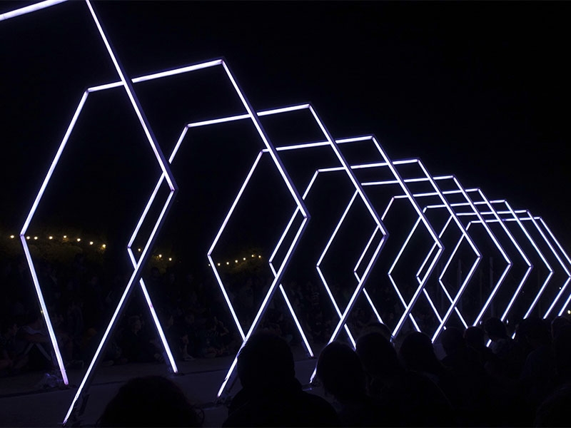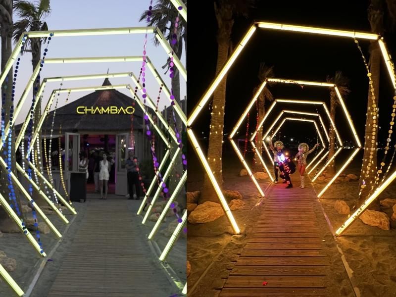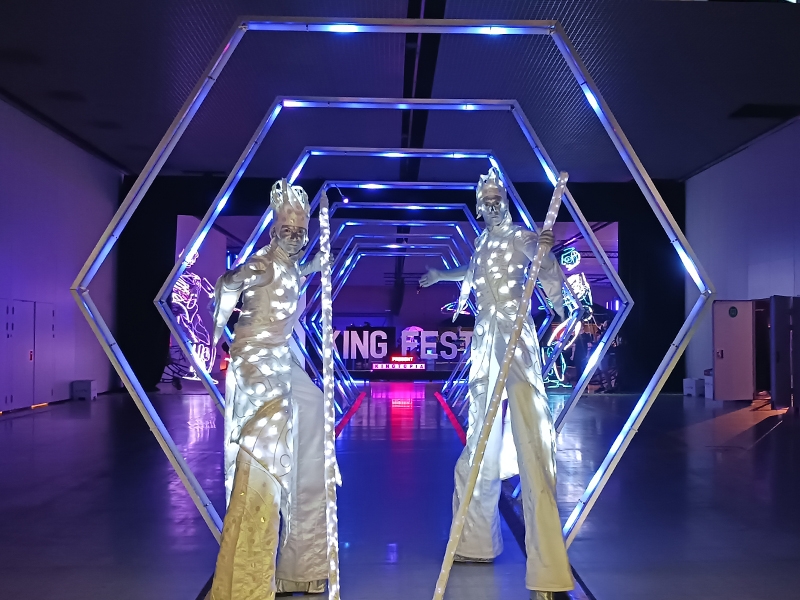We propose an installation consisting of a large corridor of light formed by a succession of LED figures that create a composition of great beauty, through which guests can walk and take photos as a souvenir. A very striking and elegant proposal for your event.