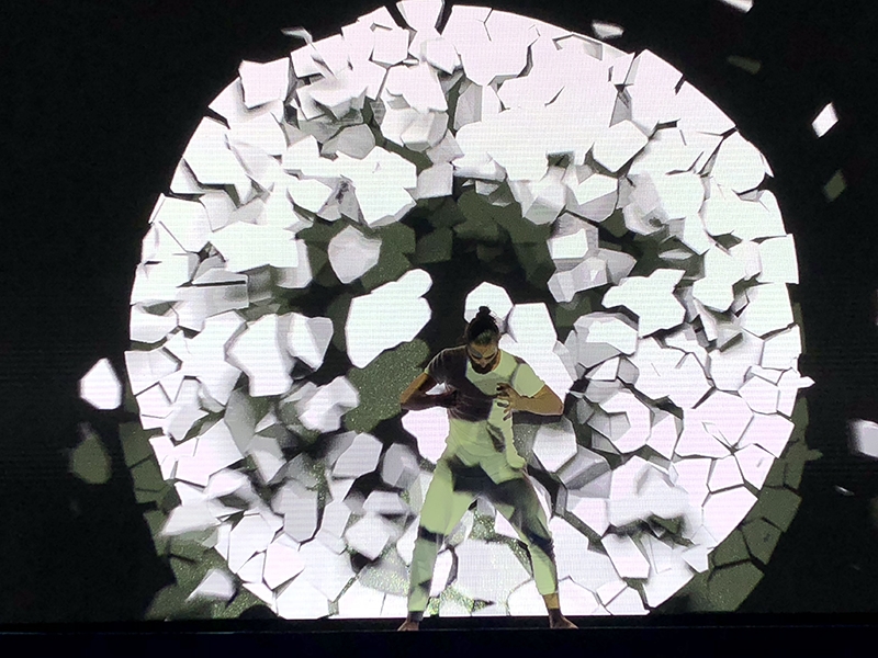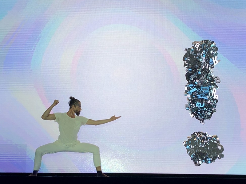 We cross the frontier between fantasy and reality to give a place and an interactives stage where the body and the background mimic each other. A mapping show that integrates technology as a way of expression. Each piece counts to evolve the next one in tune with the human side.