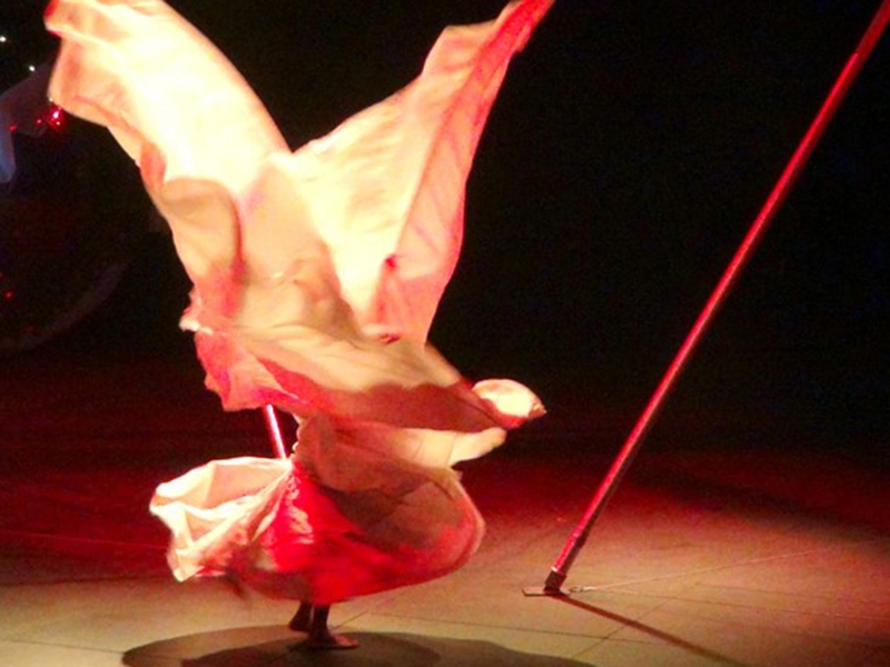 Today her technique has been improved with new technological advances in projections and light effects, and her art is masterfully executed by our dancer.