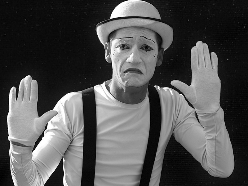 Our mimes perfectly master mime as an artistic action or theatrical medium, representing a story through facial gestures or body movements, expressing clear messages without using speech or verbal expression. An artistic, emotional and original way to let your imagination fly to present your product or idea.