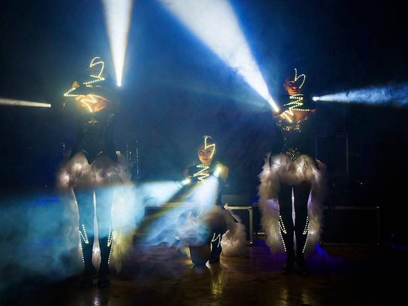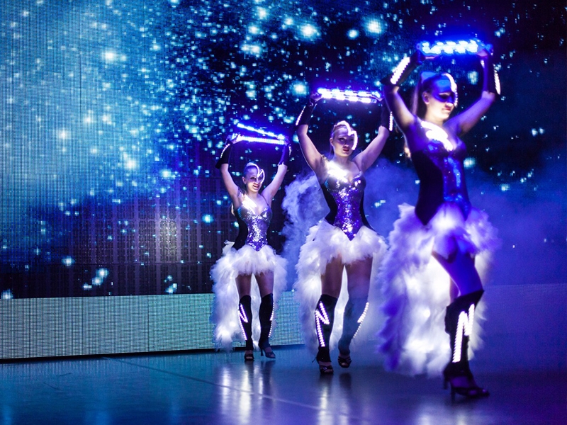 Enjoy the glamour and sensuality of cabaret with a futuristic touch that integrates LED technology and adds even more spectacularity to the event, without a doubt a show of great beauty.