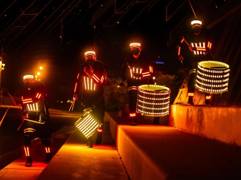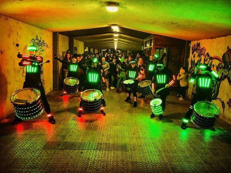 Imagine a "batucada" that goes beyond music and becomes a spectacle of light and movement. In this unique experience, the batucada performers wear costumes with LED technology that unleash a true visual symphony.