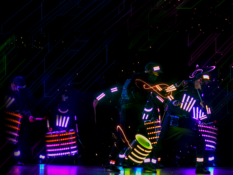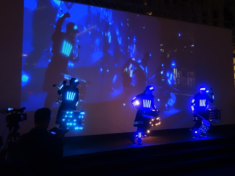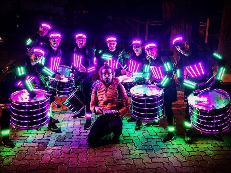 As the drums and percussions resonate to the beat of the "batucada", the LED costumes come to life with a dazzling display of visual effects. The colors and patterns displayed on the costumes are like a luminous dance that perfectly complements the energy of the group. The performers, enveloped in a halo of light, become otherworldly beings dancing to the infectious rhythm.