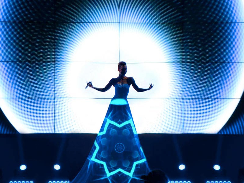 The dress responds to audio and visual cues, projecting dynamic imagery onto its surface. It enhances the storytelling and emotional impact of the opera, complementing the music, lighting, and choreography.