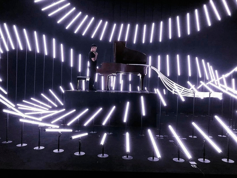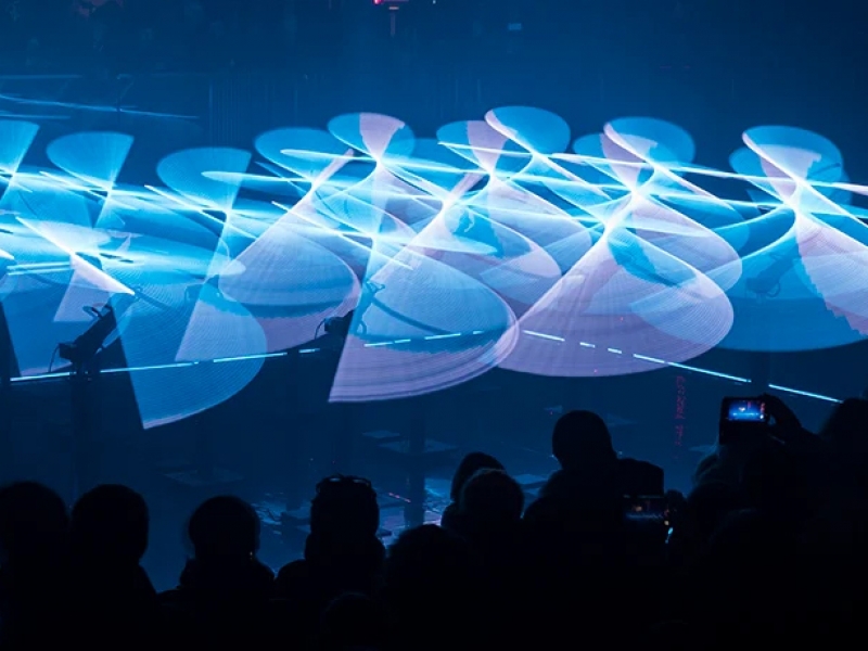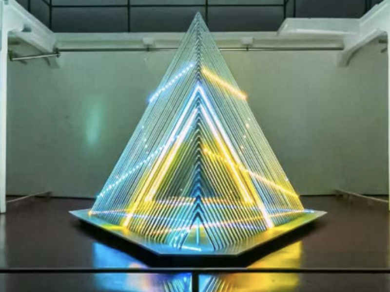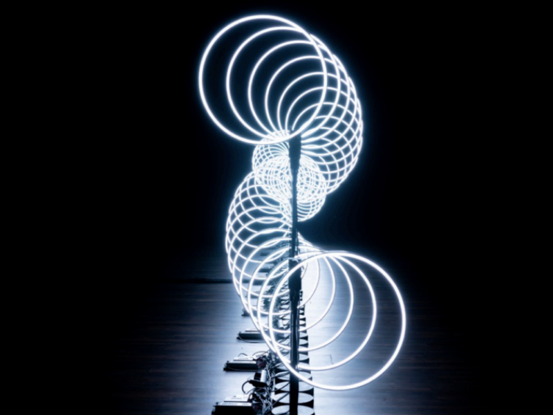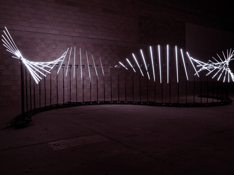 Imagine a light installation that completely transforms any space into a world of wonder and awe. This unique creation comes to life in a sinusoidal motion, like a snake of light that meanders across the stage or event, captivating your guests and leaving them spellbound.