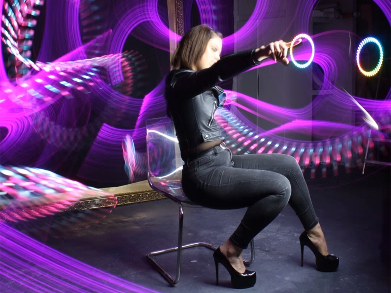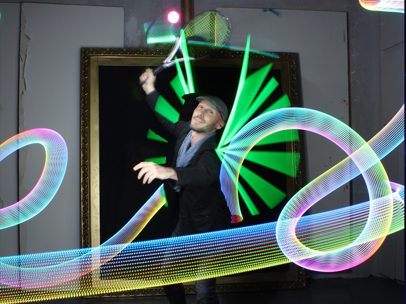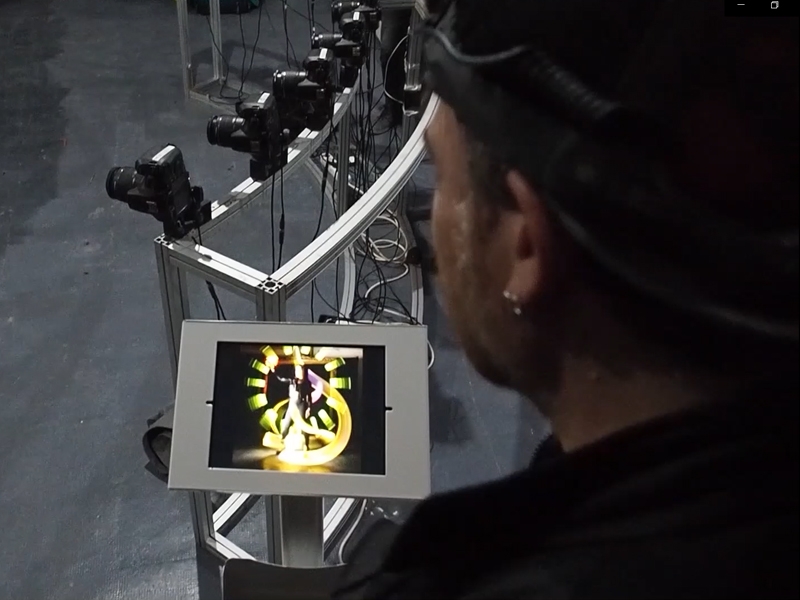 The Bullet Time Lightpainting Photocall is a ring-shaped truss installation equipped with 12 cameras that take a shot at the same time. Through the Lightpainters team of Creartys, led by Frodo DKL, a battery of photos will be made that will lead to a small animated video in 3D Lightpainting.