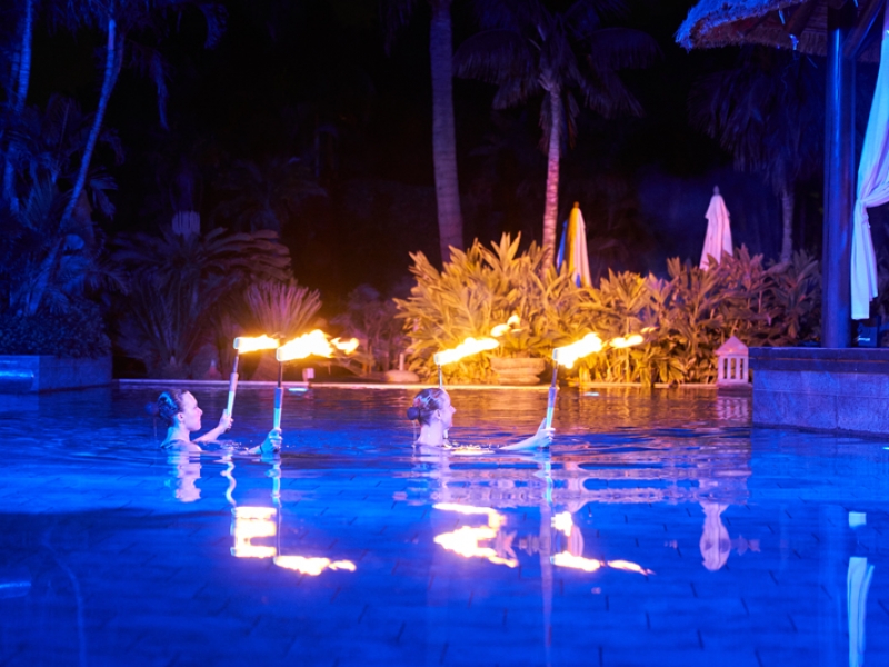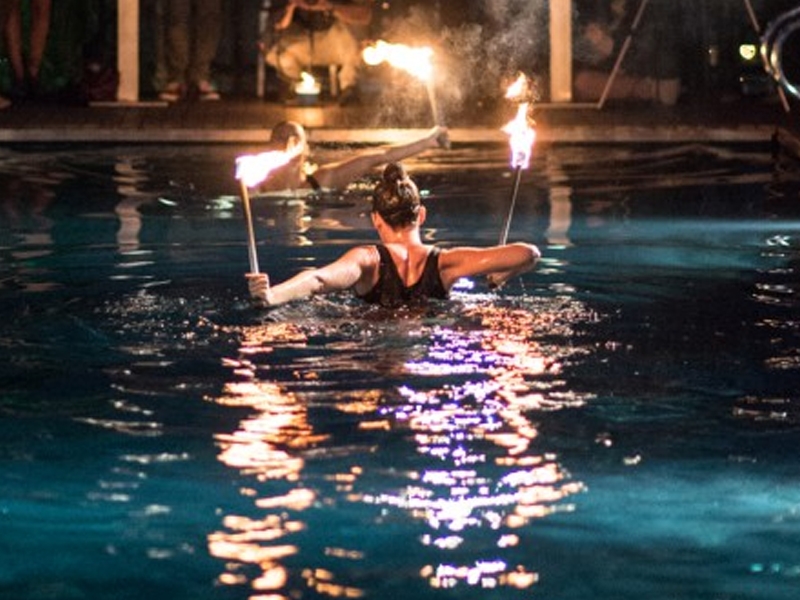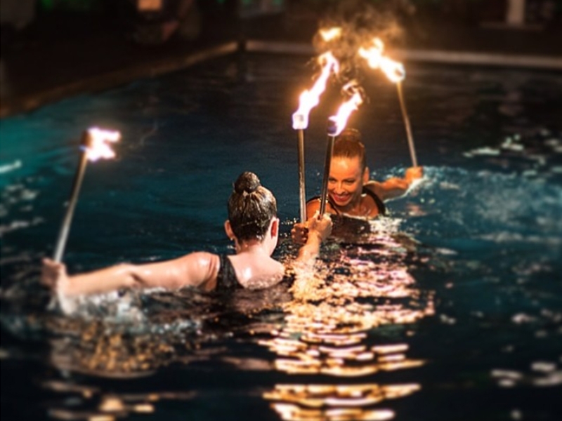 Our team of talented artistic swimmers, led by the amazing duo, combines the beauty of synchronized swimming with the thrill of fire. Watch as they perform stunning routines, seamlessly blending graceful water choreography with spectacular pyrotechnic displays. Artistic Swimming offers a unique and unforgettable experience that will leave you in awe.