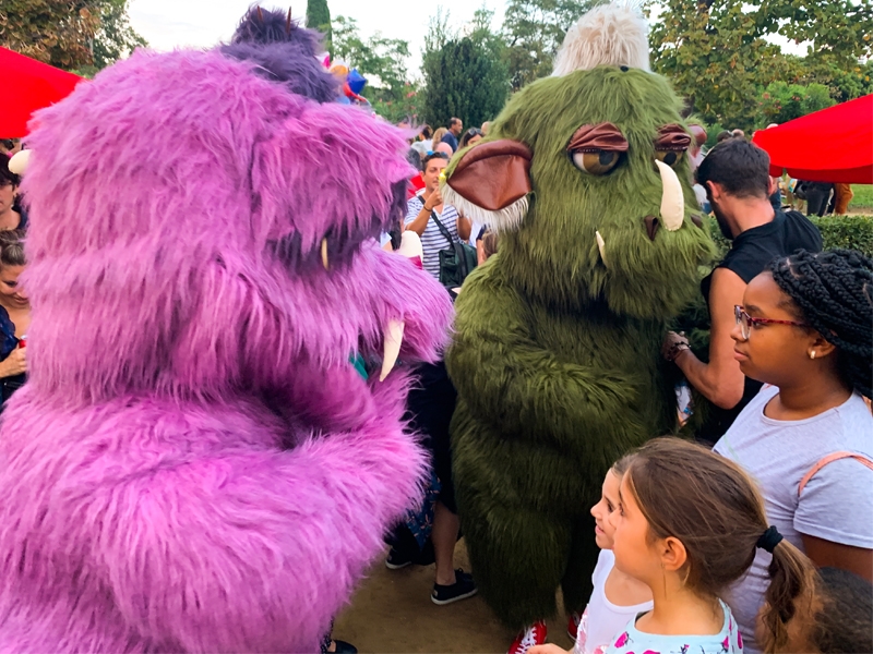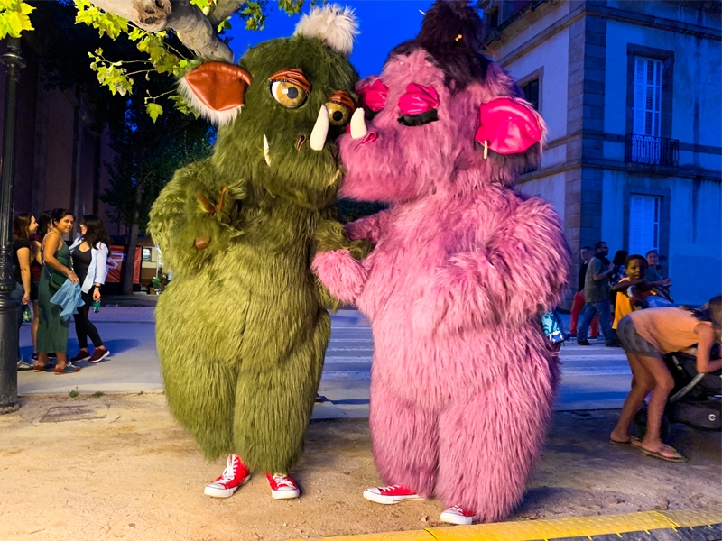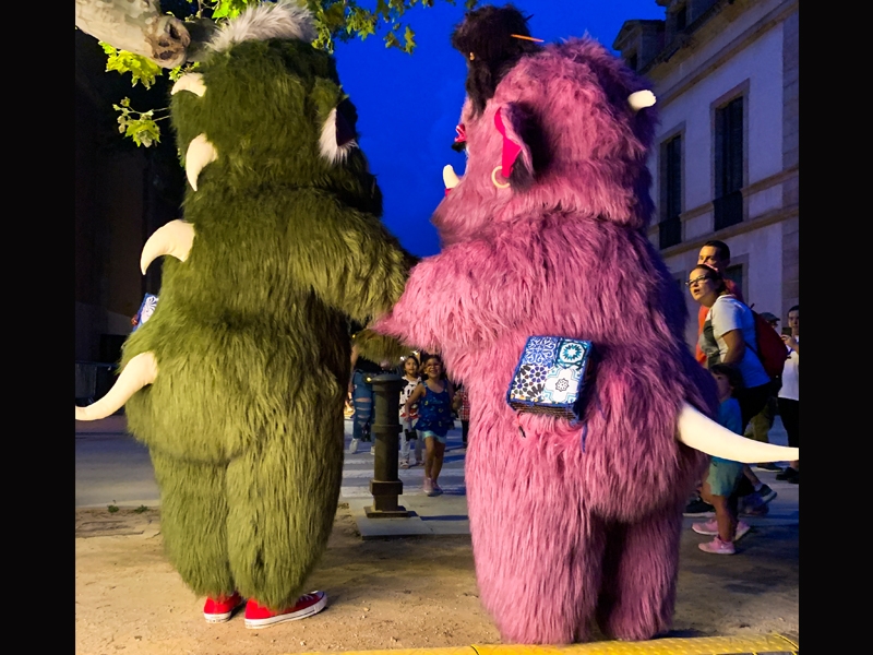 It is a traveling show with articulated costumes in the shape of gigantic characters of fantastic tales suitable for all kinds of events where interaction with the audience is sought.