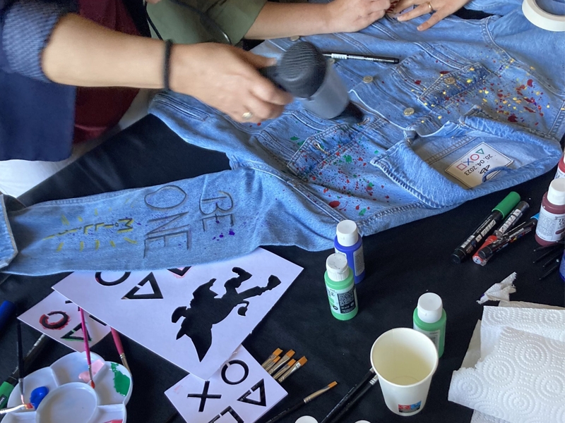 From tote bags to jackets, handbags to shoe decoration, this artist is able to translate her creativity into a wide range of objects. Each design is a unique expression that reflects the client's vision and style. Event attendees have the opportunity to witness the creation of these art pieces in real time, which adds an interactive and exciting component to the experience.