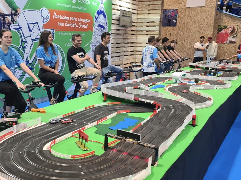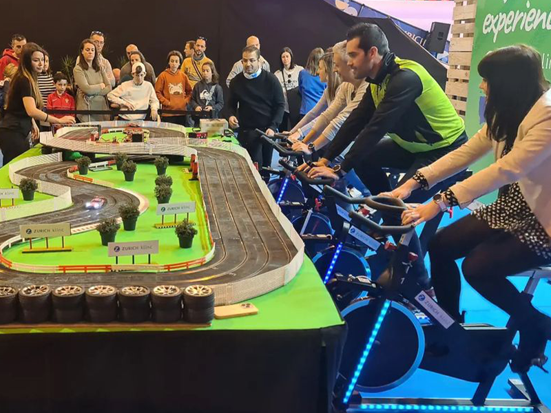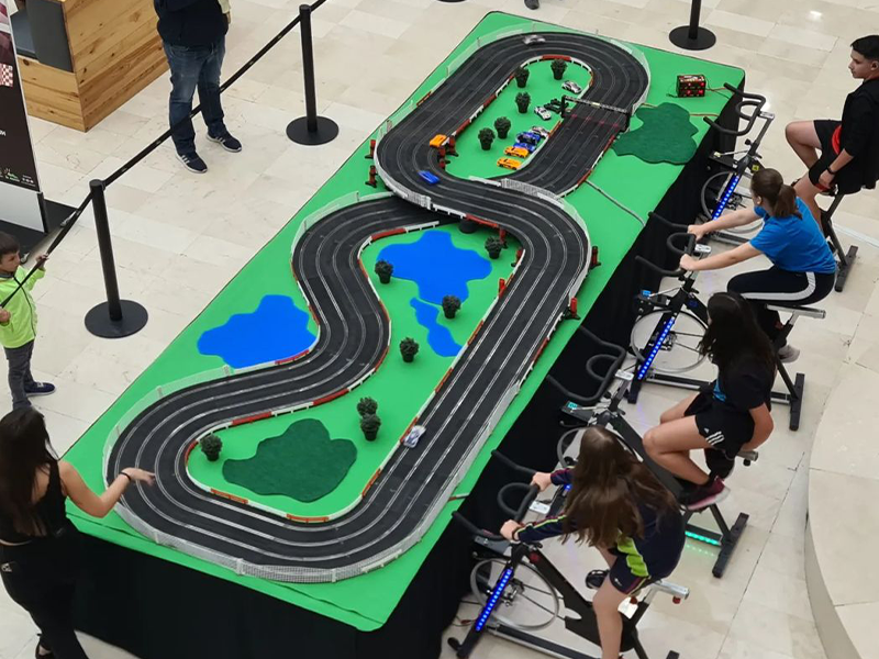- Ecological Scalextric: Relive the excitement of traditional Scalextric using controls or pedaling our bicycles. The usual Scalextric played like never before.