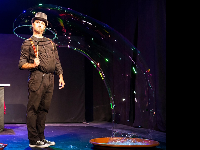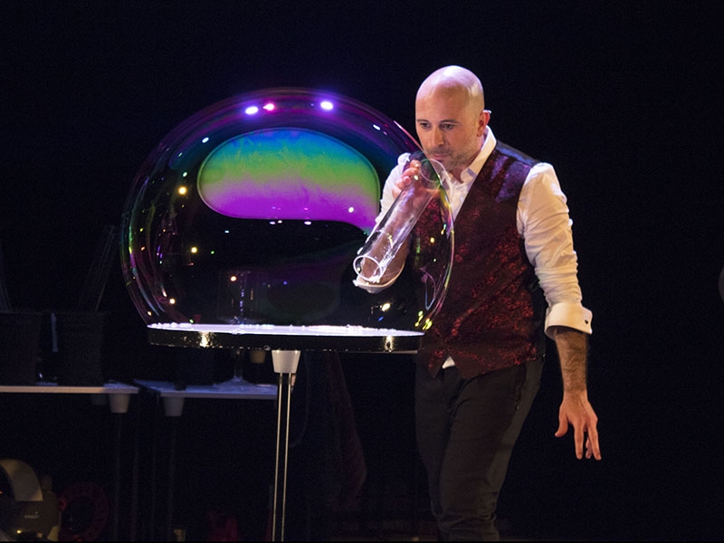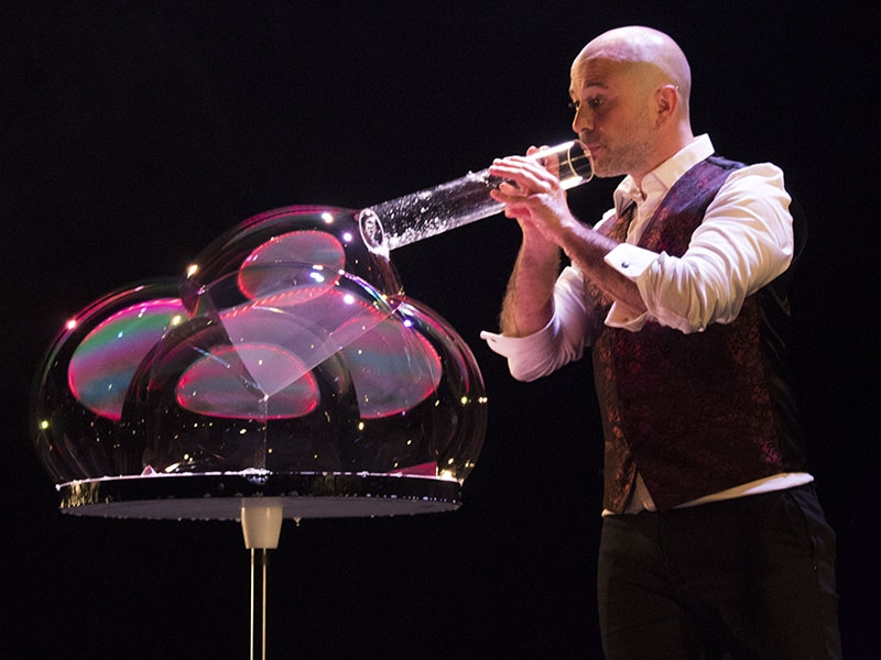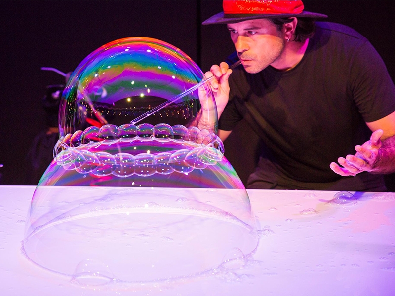 A show which leaves place for imagination where our artist plays and creates a beautiful show which will impress to anyone by these giant bubbles creations.