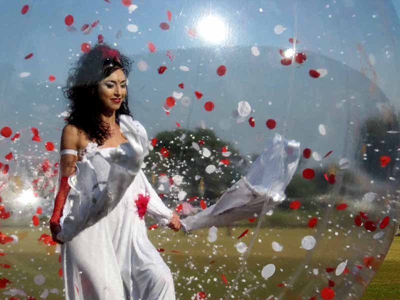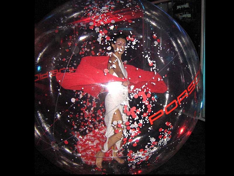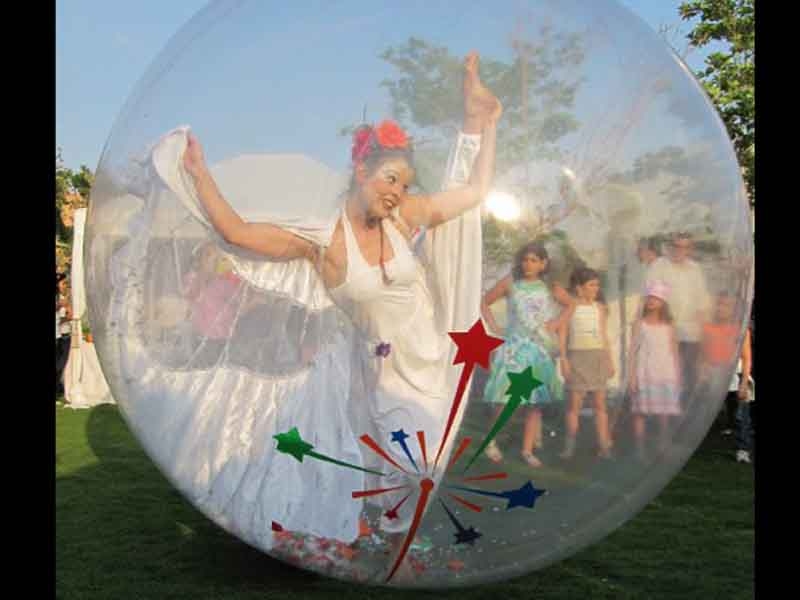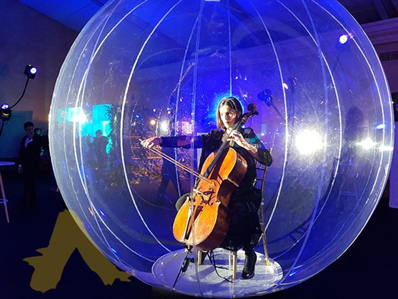 The dancers are acting inside their own bubble. They will perform with grace, coquetry and will evoke emotions. The bubble can be customized with the client logo. Ideal for the guest’s reception at the event, or animating a cocktail with a touch of proximity…untouchable!