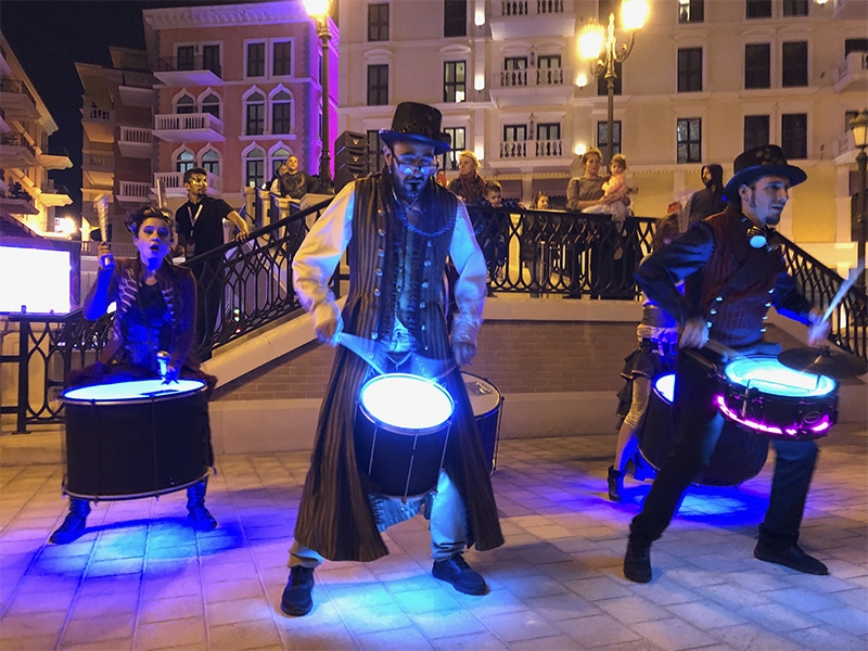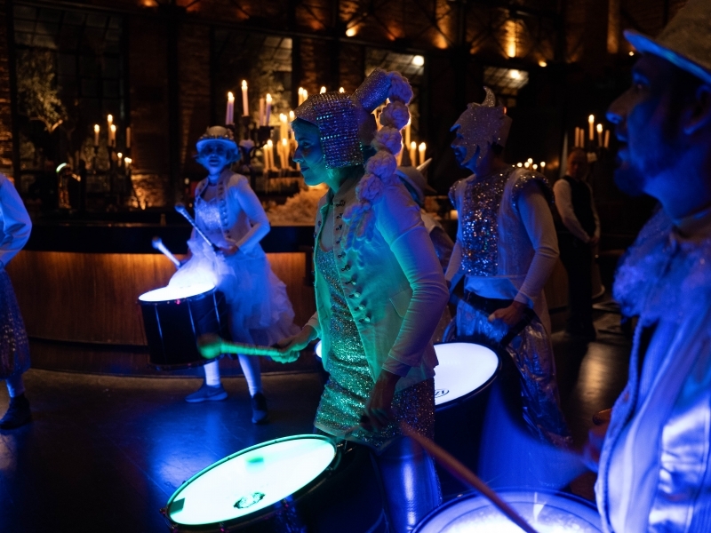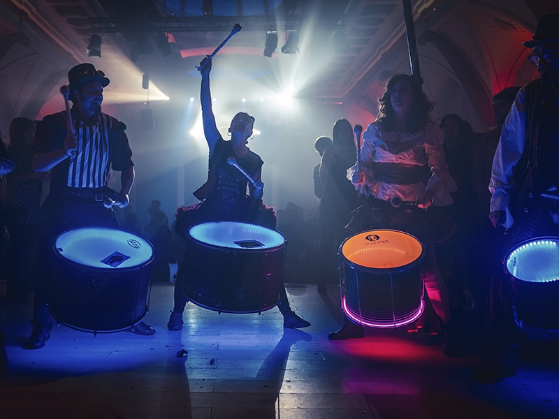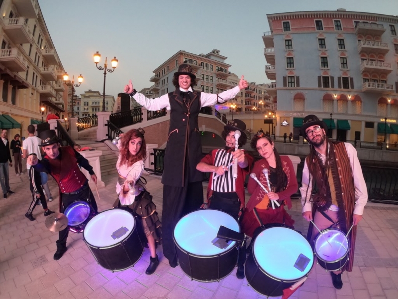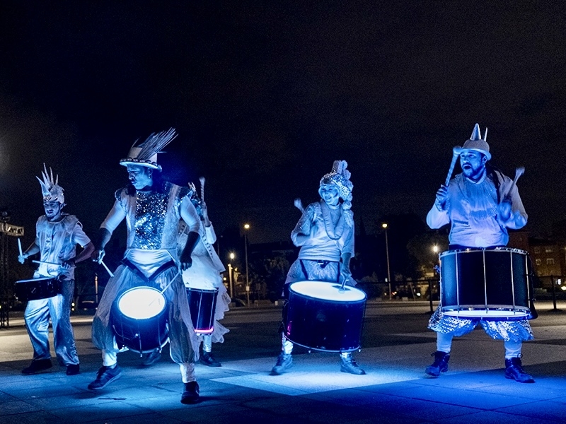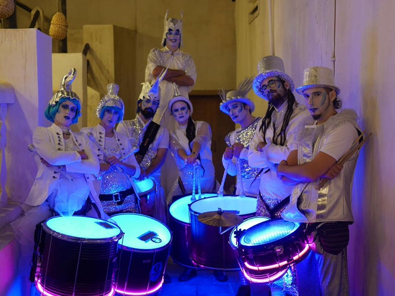 The Spanish batucadas are bands of drummers who play dynamic rhythms of Brazilian samba. In Walkabout or on stage, our musicians always play with happiness and energy.