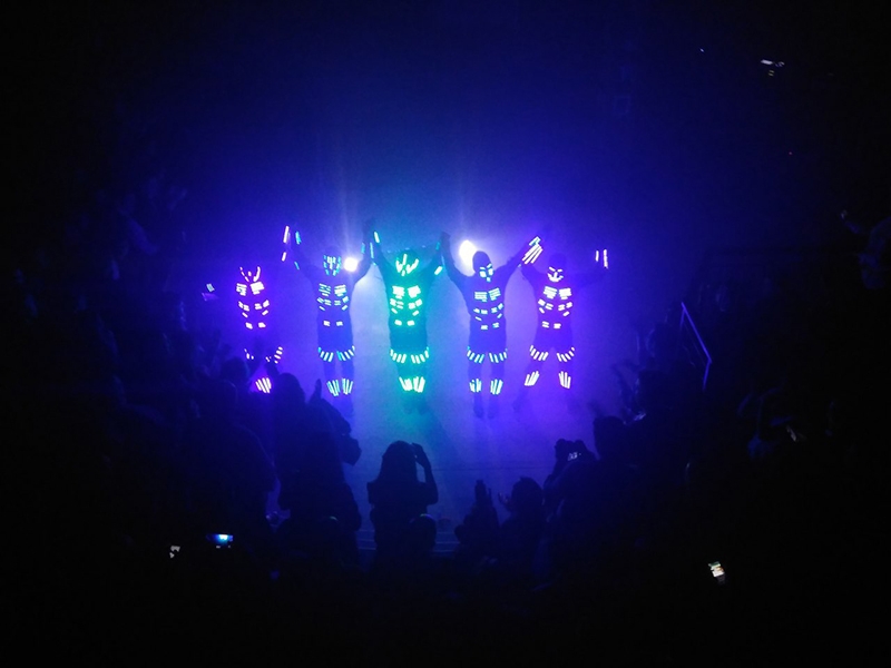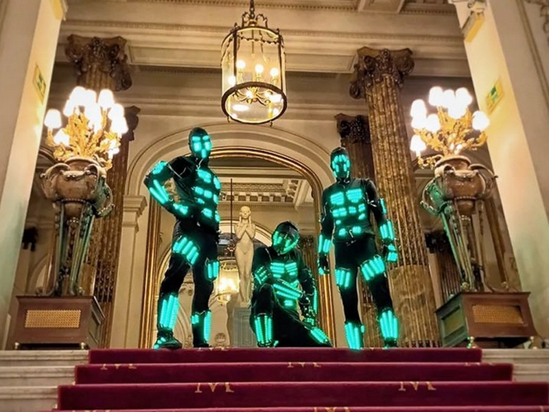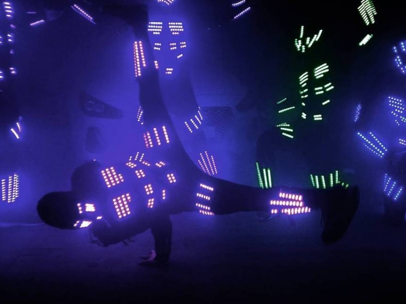 The perfect combination of the latest lighting technology, costumes, synchronized dance choreography and the best international dancers result in this unique, innovative and impactful show based on optical illusions. The well characterized artists in their light suits adapted to the event’s thematic, perform their dance on a darkened stage with black background. They become invisible and reappear within seconds in different locations of the stage, in a perfectly synchronized interplay of the lights.