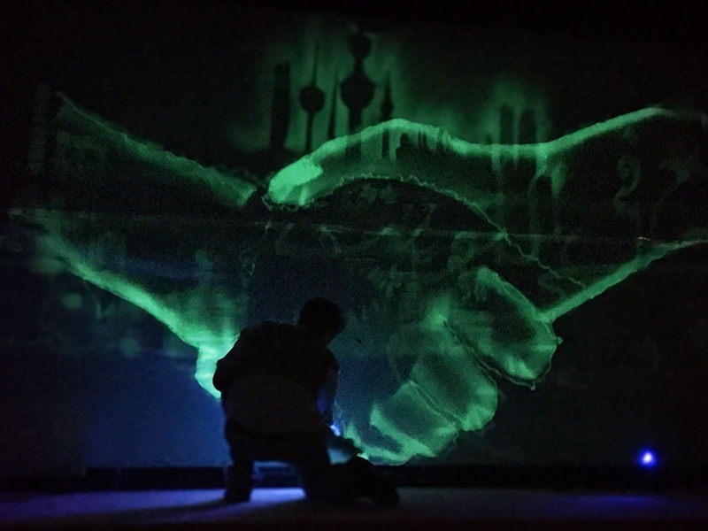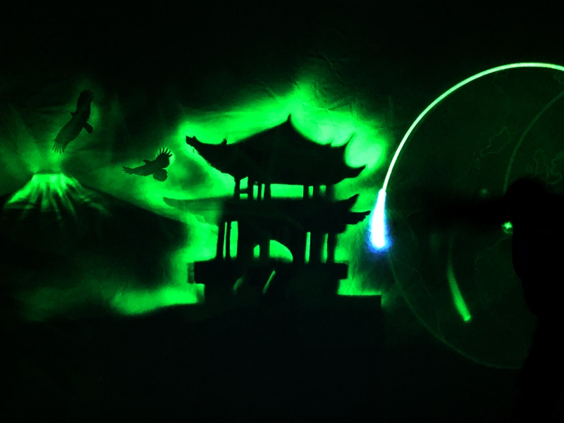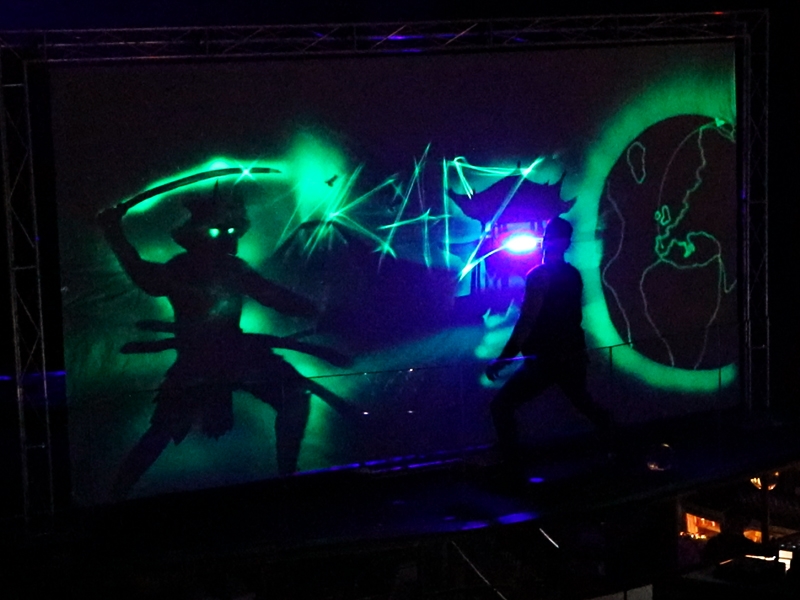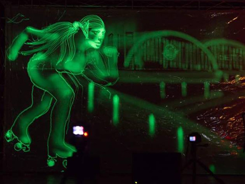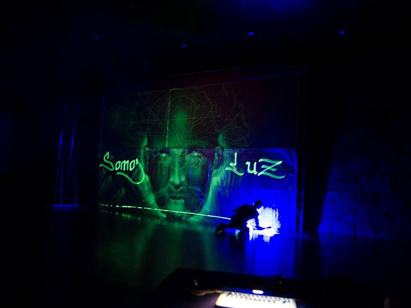 photo-luminescent canvas with very peculiar paintbrushes, lasers and torches. A dynamic and