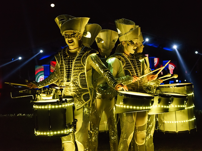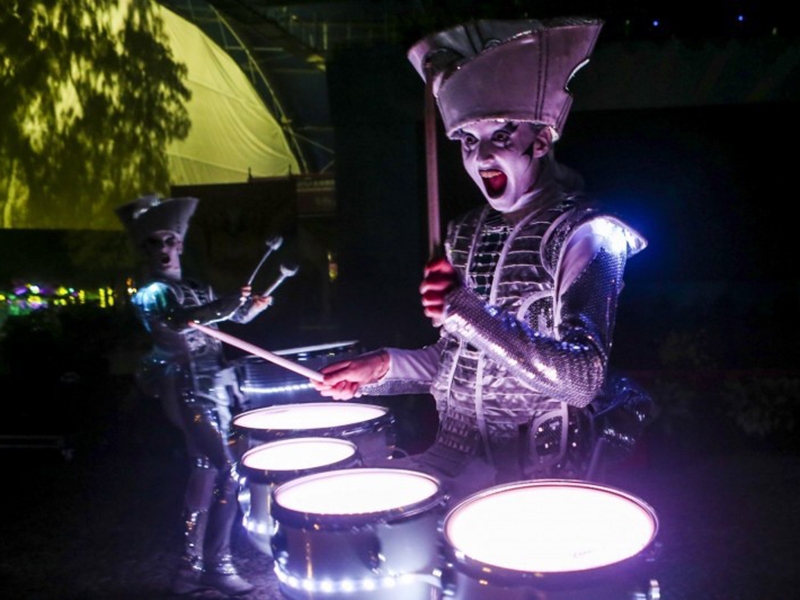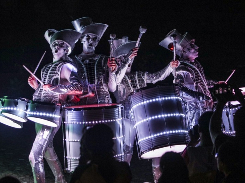 Shining Drummers offers a medium-scale street theatre show performed by 5 to 7 characters that combines high-impact drumming, dynamic choreography and beautiful lighting design.