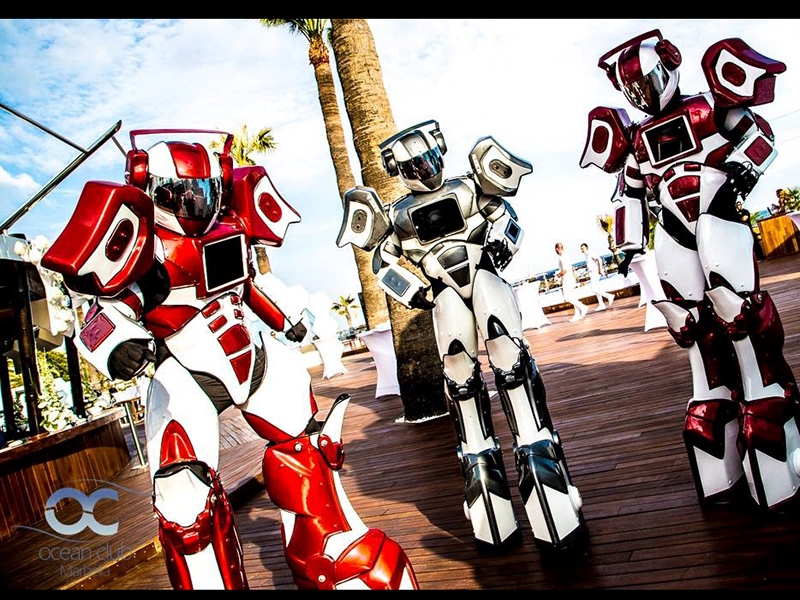 This Robots come from the Future. A perfect animation for your event, where the artists will walk around or will performance on stage. All the guest will want a picture with them.