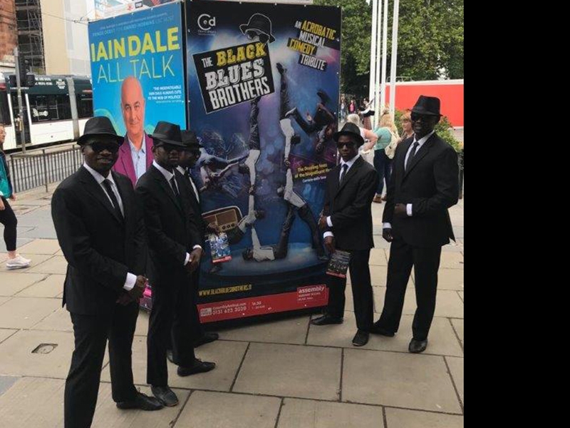 A group of Kenyan acrobats under the aesthetic and musical umbrella of the legendary Blues Brothers. The show is an incredible flood of acrobatics and balances, circus, musical comedy hilarious gags and dance challenges that incite the participation of the audience. Backflips, human pyramids and extreme physical theatre in a proposal of virtuosity suitable for all audiences.