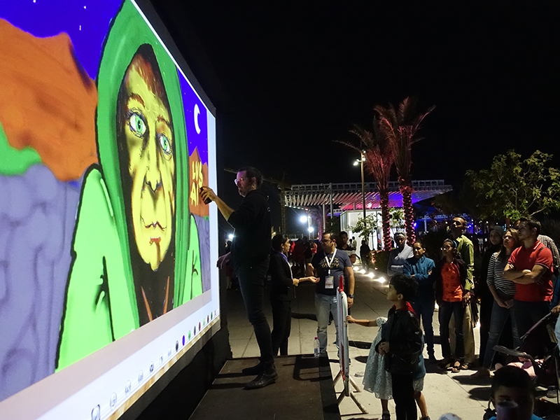 Revolution in the Speed-Painting shows with this performance that allows painting with cans lights. Indeed, Quim Moya, an expert in live painting performances, creates a series of visuals contents on a video-screen replacing his brushes by lights. Using a software program and a receptor placed behind the screen, it permits to change colours, textures and virtual painting effects in a same show. The result is a technological and artistic performance of last generation. Welcome to the era of digital art!