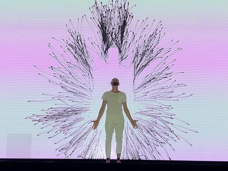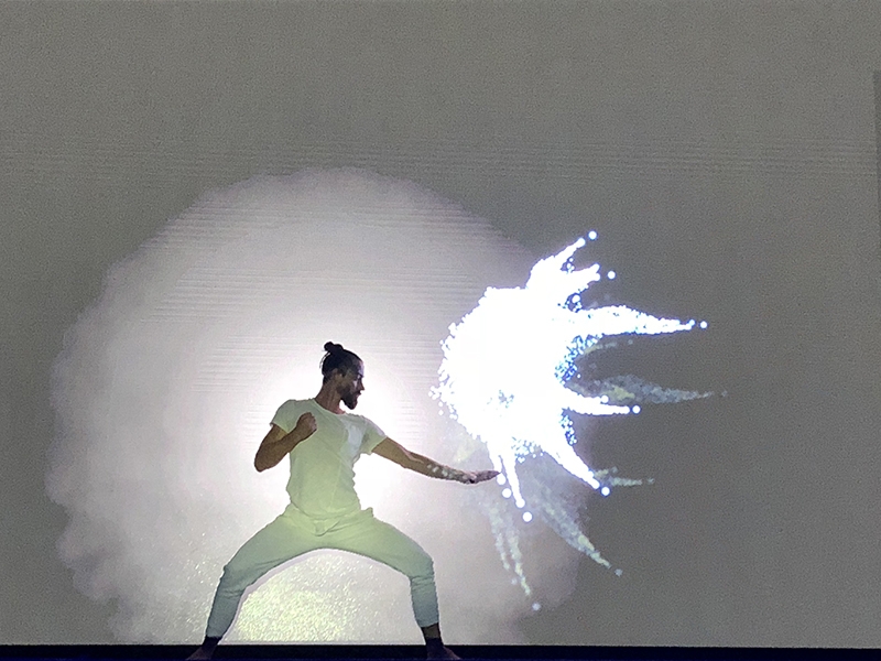 We cross the frontier between fantasy and reality to give a place and an interactives stage where the body and the background mimic each other. A mapping show that integrates technology as a way of expression. Each piece counts to evolve the next one in tune with the human side.