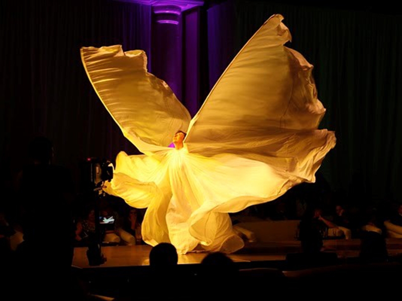 Today her technique has been improved with new technological advances in projections and light effects, and her art is masterfully executed by our dancer.