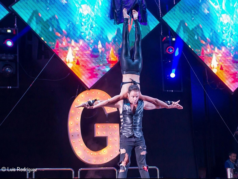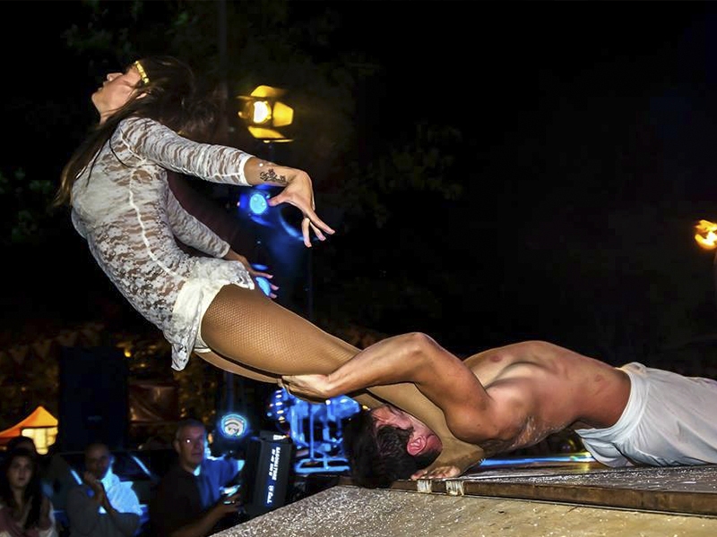 Great show performed by two artists who mix force and hand-balance. An original version is presented where the cards fly between acrobatics.