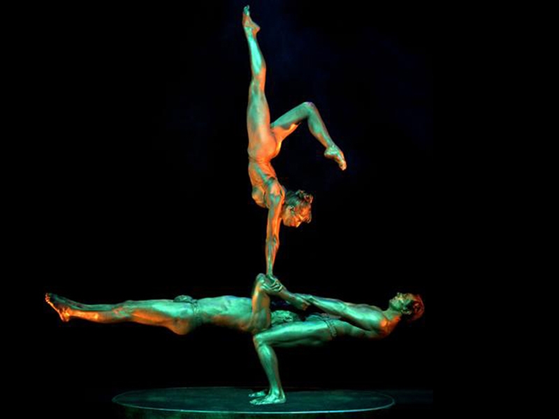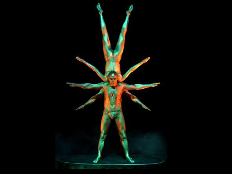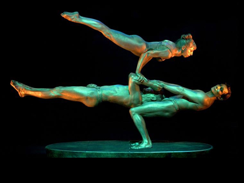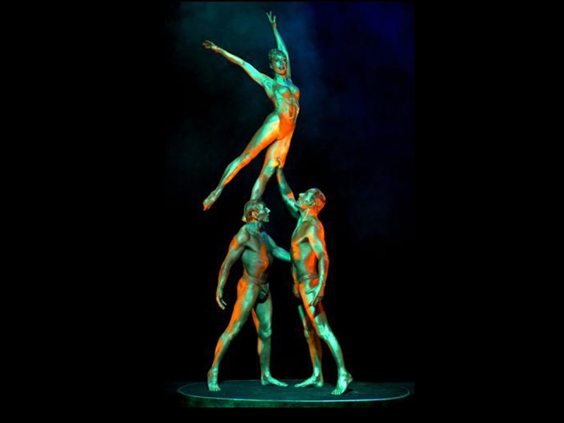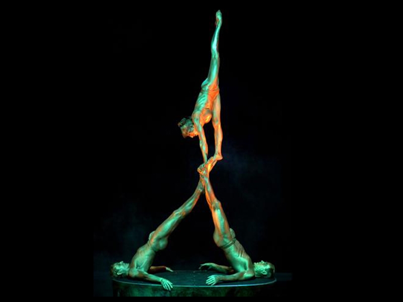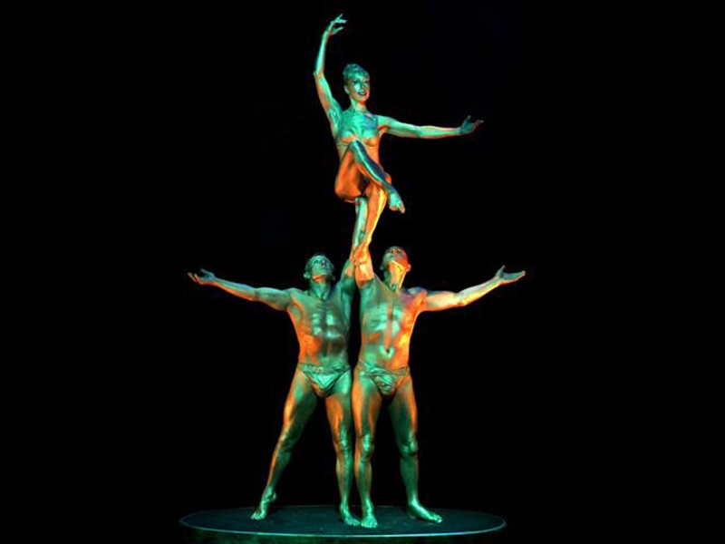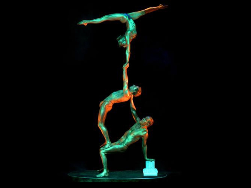 A marble pedestal, three artists dressed as golden statue move slowly. Performing an adagio style, they create unbelievable positions and movements. Poetic and emotional, the performance is a breathtaking moment for all the audience.